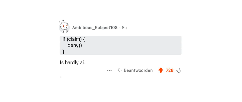 What caught my attention in the last piece was more of a general public’s reaction to the related news: “Murdered Insurance CEO Had Deployed an AI to Automatically Deny Benefits for Sick People.” In this case, by ‘general public’, I am referring to Reddit users, of course. The top comment, which received a substantial amount of upvotes, said: