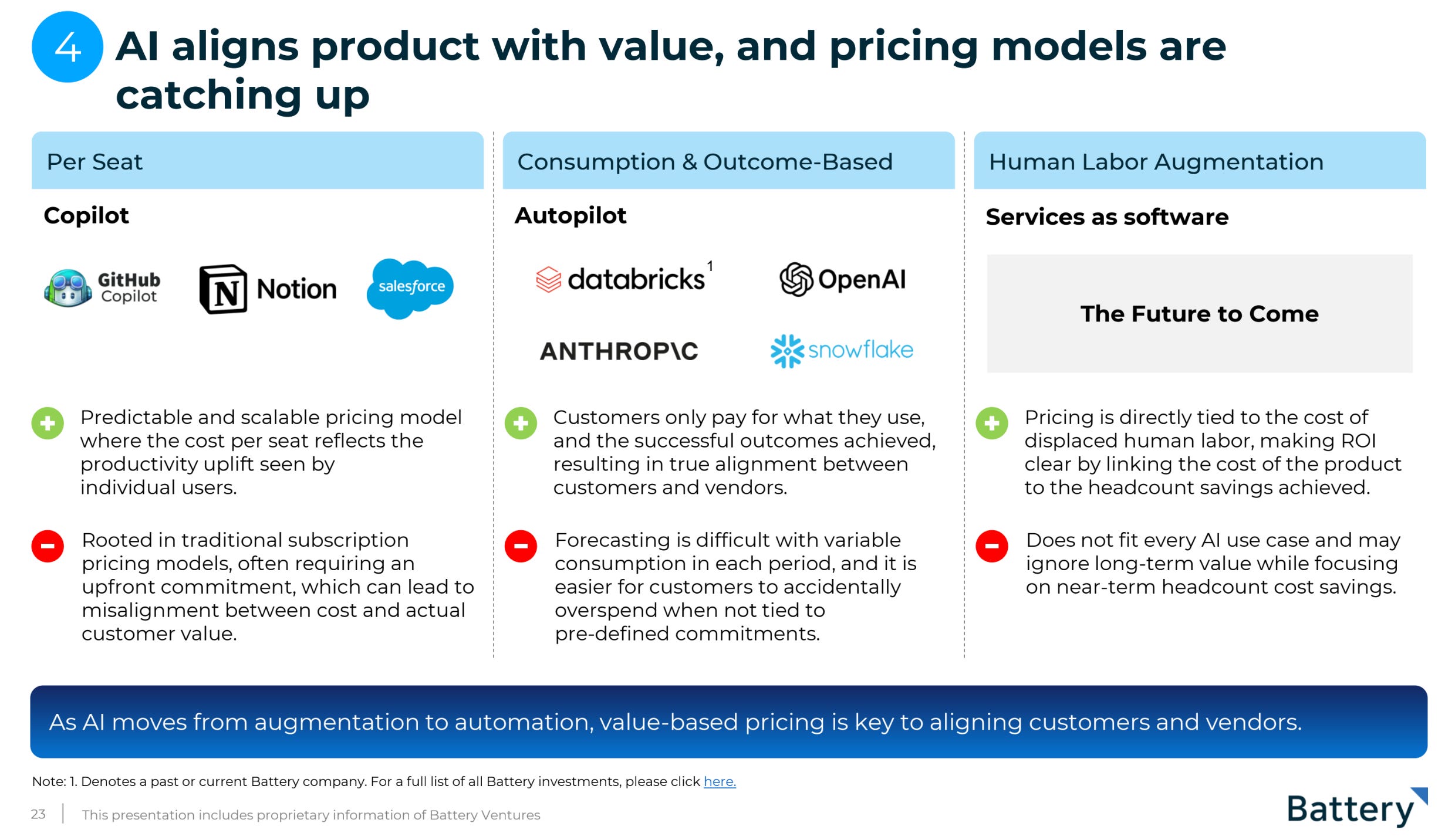 Will we see more outcome-based pricing by new startups and incumbents? Definitely. Will all existing SaaS companies pivot into a new pricing model paradigm? Time will tell.